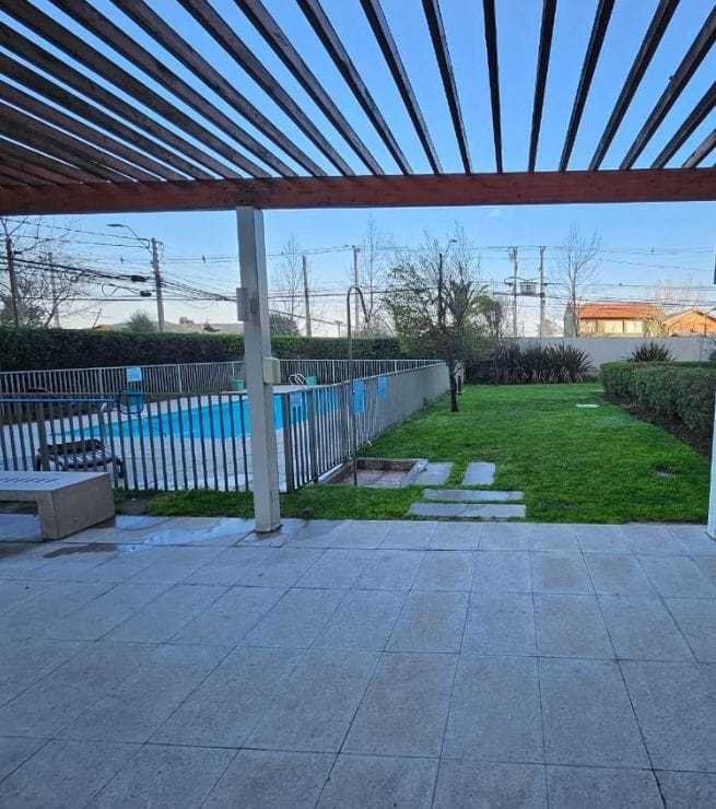 Edificio full amenities: piscina, quincho, áreas verdes, juegos infantiles, salón de eventos, seguridad 24/7 y acceso para personas con movilidad reducida.