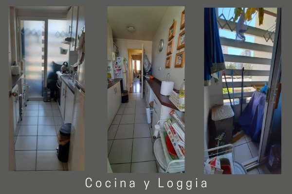 Cocina cerrada con piso cerámico, amoblada, cuenta además con loggia, instalación de lavadora.