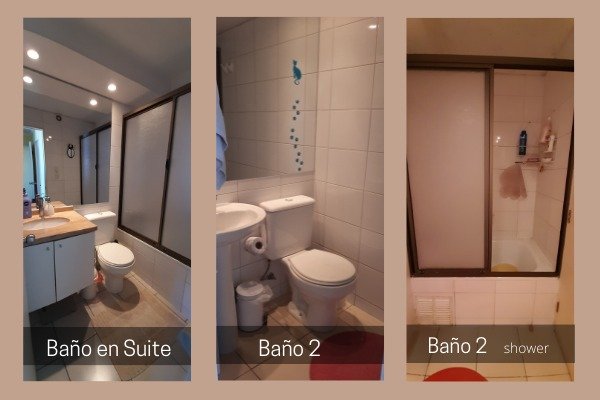 2 baños con piso cerámico, shower door, vanitorio, ventilación y luz natural. (Principal en Suite).