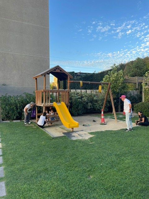 Jardín, juego infantiles, piscina y varios quinchos para asados
