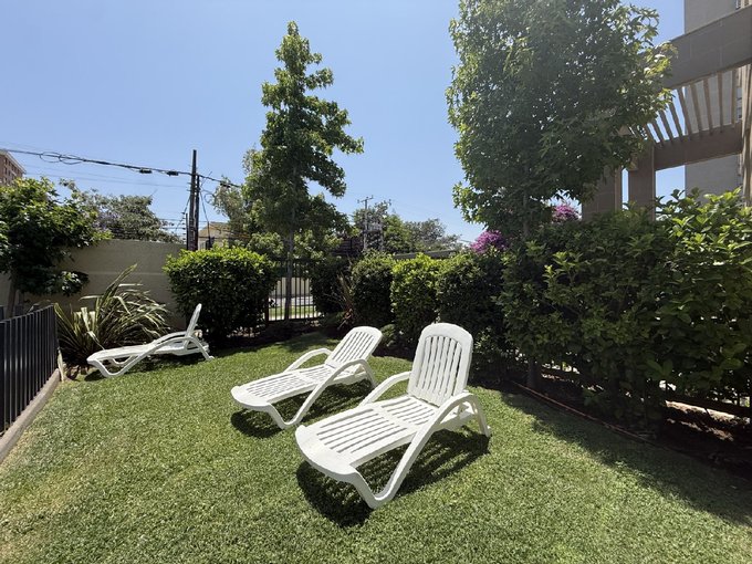 Condominio cuenta con jardines formados, areas verdes, piscina, salon de eventos, gimnasio, estacionamientos para visitas, ascensores, conserjes 24 horas.