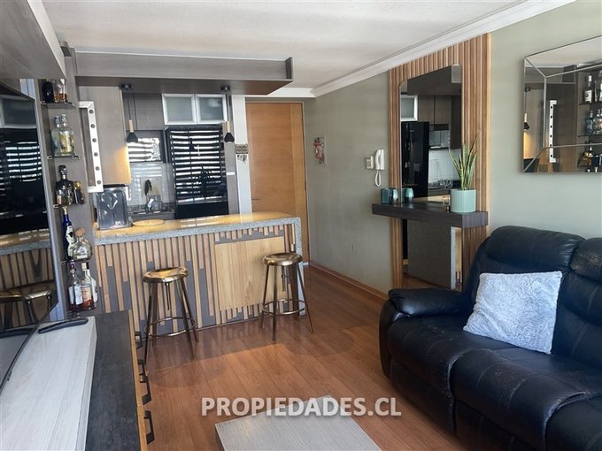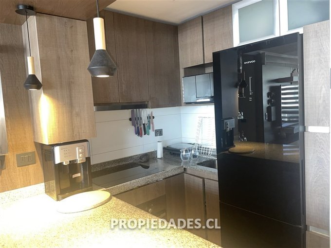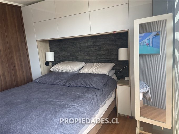Dos amplios dormitorios, principal con balcón, vista despejada al poniente. Un baño. Living comedor con salida a terraza con parrilla incorporada, cocina americana completamente remodelada y con conexión a lavadora. La venta de la propiedad incluye todo el mobiliario empotrado que se aprecia en las fotos!! Gastos comunes aproximados incluyendo consumo de agua caliente: verano $120.000, invierno $140.000 (pueden variar según consumo personal)