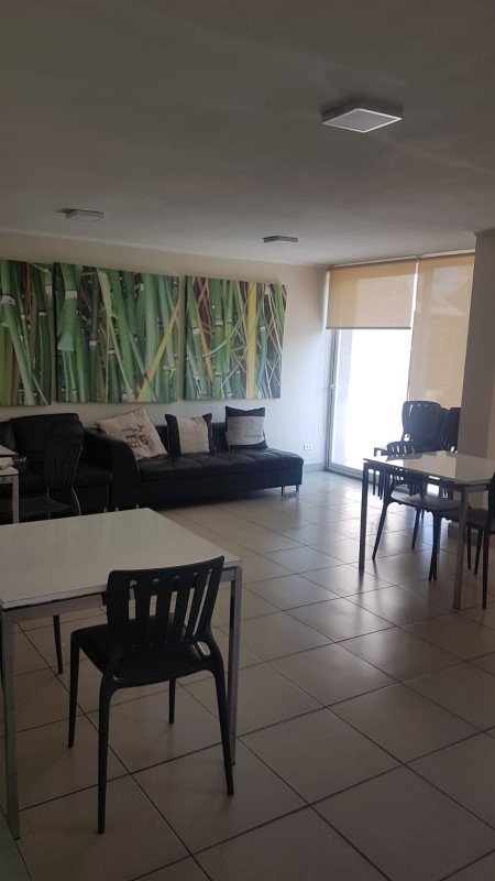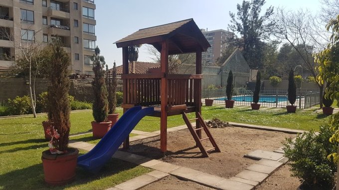 Edificio cuenta con seguridad 24hrs, estacionamiento de visitas, piscina para adultos y niños, juegos infantiles, gimnasio, sala de eventos, lavandería y bicicletero
