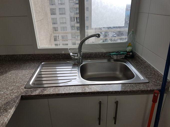 La cocina viene con mobiliario, horno empotrado eléctrico, encimera eléctrica de 4 platos, campana extractora y ventana con luz natural.