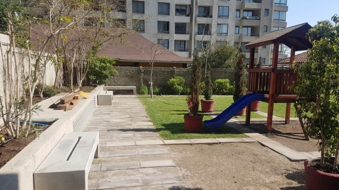 Edificio cuenta con seguridad 24hrs, estacionamiento de visitas, piscina para adultos y niños, juegos infantiles, gimnasio, sala de eventos, lavandería y bicicletero