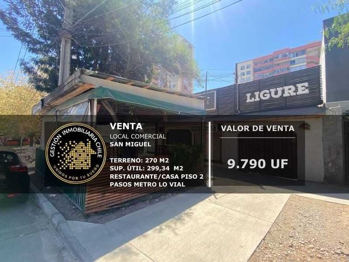 Propiedad comercial habilitada como restaurante con vivienda en segudno piso, ubicada a un costado del registro civil de san miguel a media cuadra de plaza la marina, frente al banco de chile y a media cuadra del metro lo vial. Con excelente conectividades por gran avenida, ruta 5 sur, av. Departamental y salesianos. Zona de gran afluencia de público, de constante paso peatonal y vehicular.
