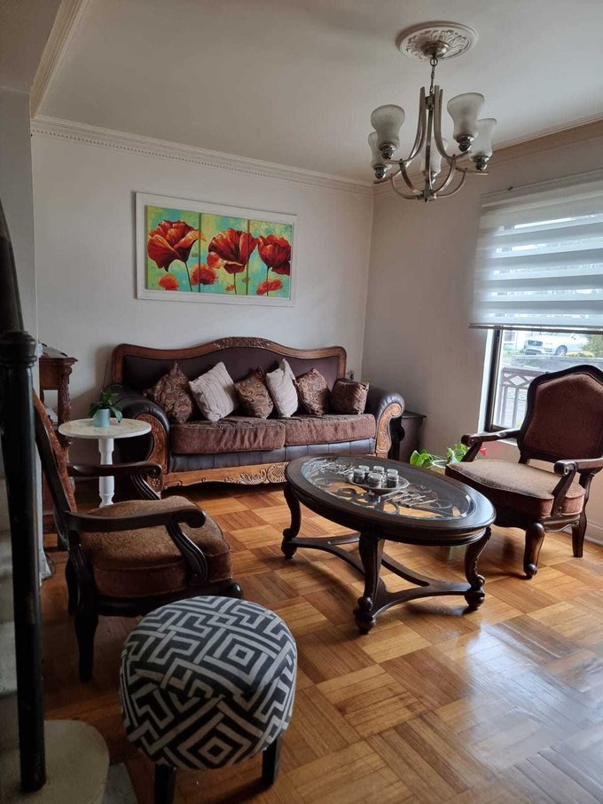 La propiedad cuenta con living y comedor independientes, ambos con piso de parquet, lo que entrega calidez y elegancia a los ambientes. La cocina es amplia, dispone de comedor de diario y pisos cerámicos, al igual que los baños.