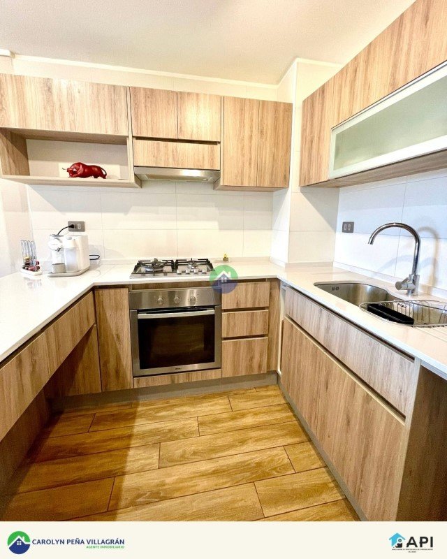 Consta de 2 dormitorios, 2 baños (principal en suite), cocina incorporada con cubierta de cuarzo, equipada con cocina, horno, campana y microondas. Incluye lámparas, cortinas, estacionamiento y bodega.