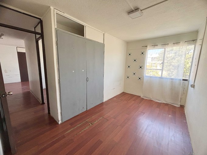El depto. se encuentra en un tercer piso con vista al oriente, se distribuye en 45 mt2. Con living comedor juntos, 1 cocina independiente, 2 Dormitorios con closet, 1 baño.