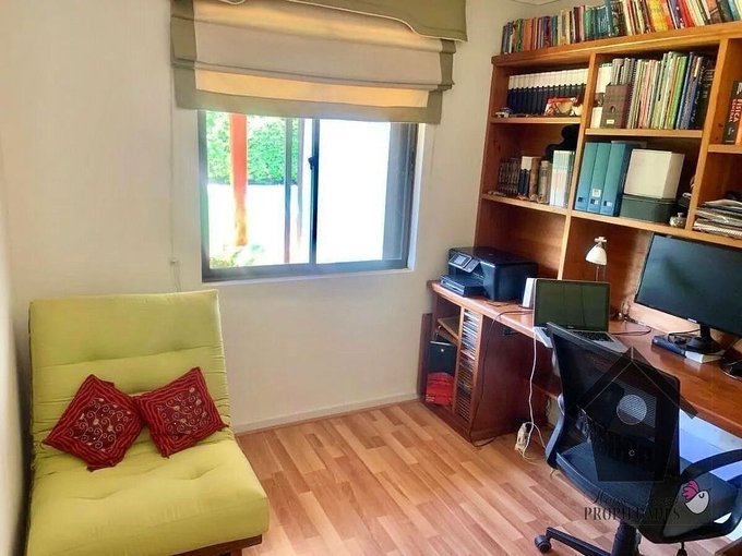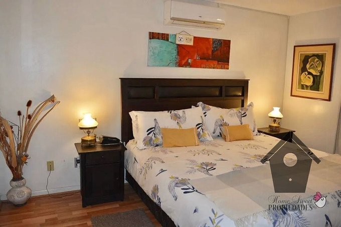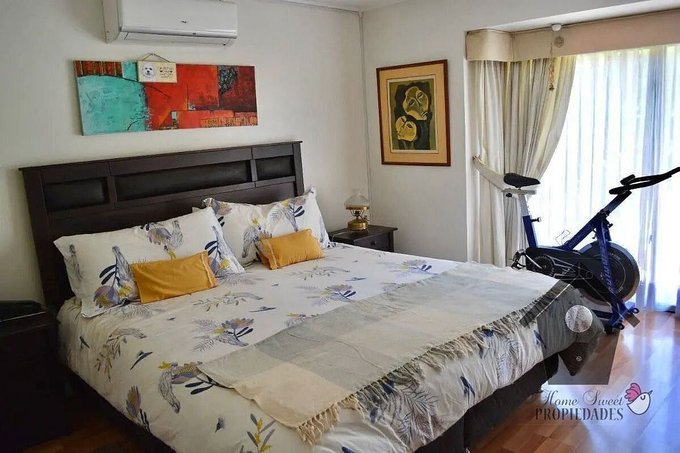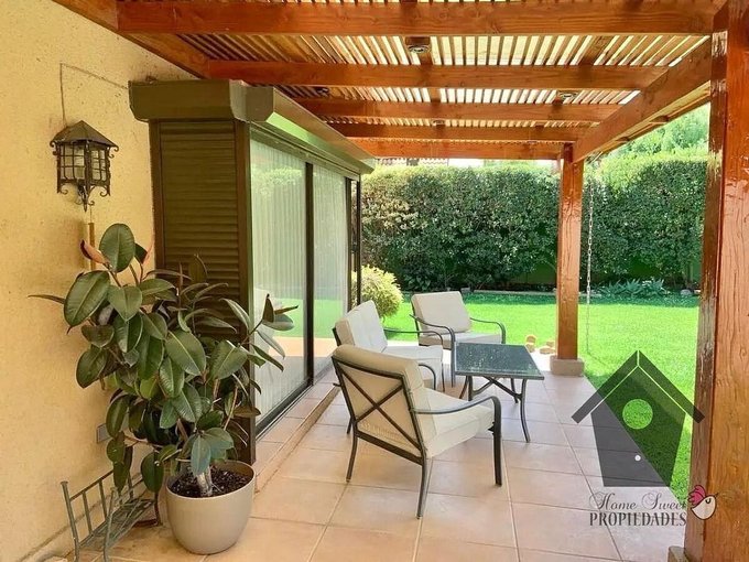 Persianas metálicas automáticas en todas las ventanas. Cocina amoblada equipada con encimera a gas y horno eléctrico empotrado. Aire acondicionado silencioso en el dormitorio principal y en el estar del segundo piso. Agua caliente y calefacción con calefon y caldera, calefacción con losa radiante en los dos pisos. Portón eléctrico. Riego automático. Iluminación en los jardines, incluido temporizadores.