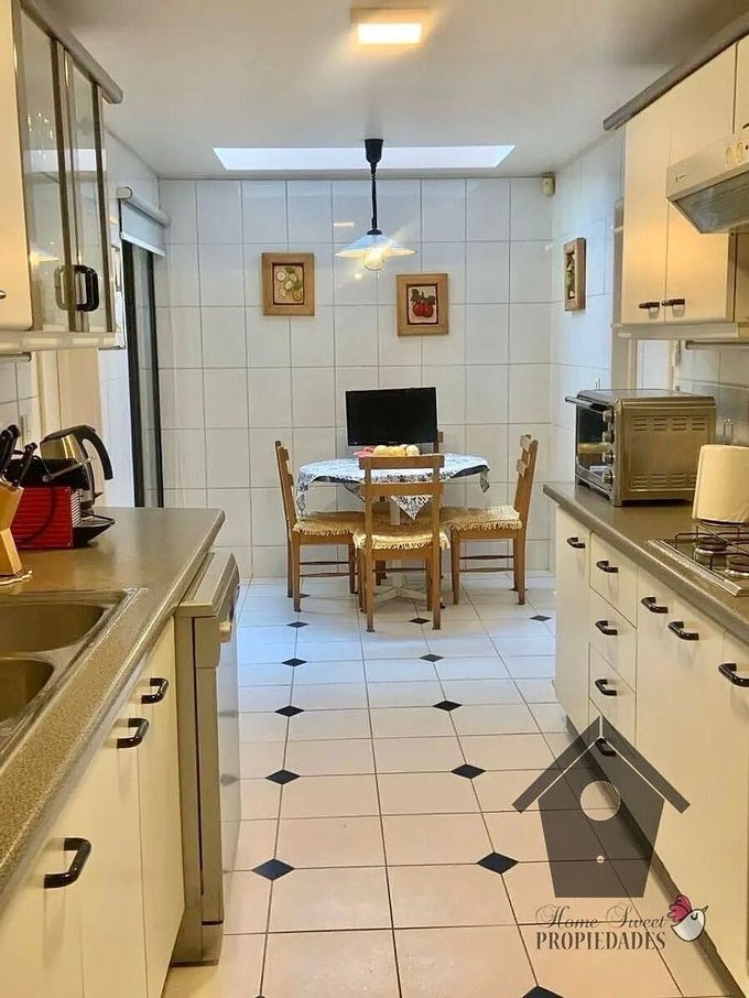 c) Desde el Hall de entrada, también se accede a la cocina con comedor de diario, Lavandería , una bodega y al dormitorio de servicio con baño privado.