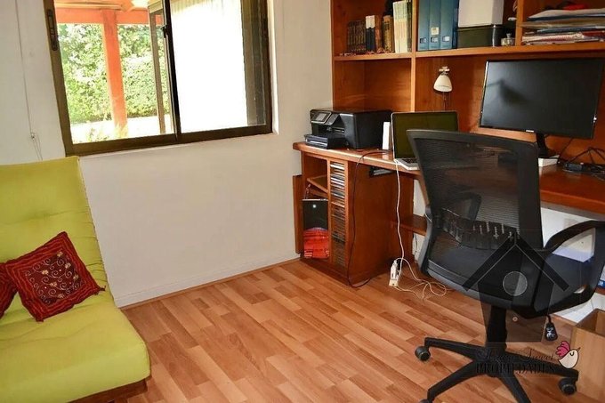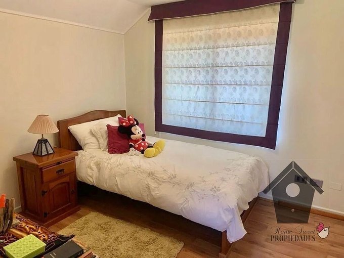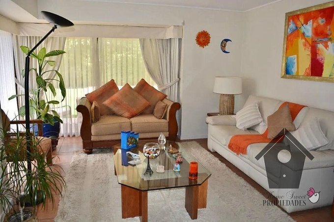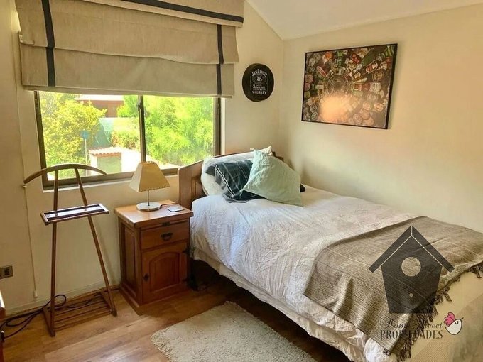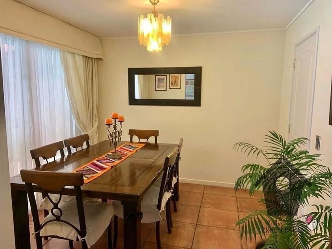 Un clásico de Casagrande, Peñalolén es esta casa de estilo Colonial Contemporáneo, con elementos de la Casas colonial chilena, pero con una interpretación y equipamiento moderno. Entregada el año 2003 la casa de dos pisos y en excelente estado de conservación y mantenimiento, tiene estar (living) y comedor separados, un dormitorio principal en suite con baño y walk in closet, tres dormitorios simples, un baño común completo, baño de visita, un estar privado, además de cocina con comedor de diario, logia bodega y dormitorio de servicio con baño privado. Tiene antejardín con estacionamiento doble y un amplio patio con terraza, jardín formado y piscina.