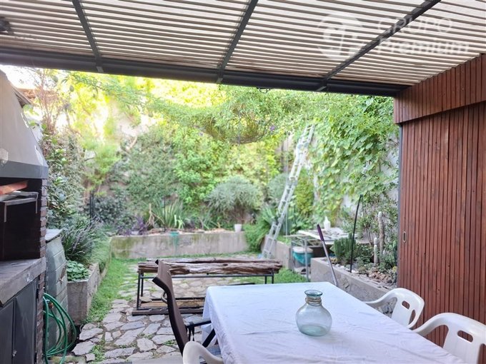Jardín trasero con terraza y quincho