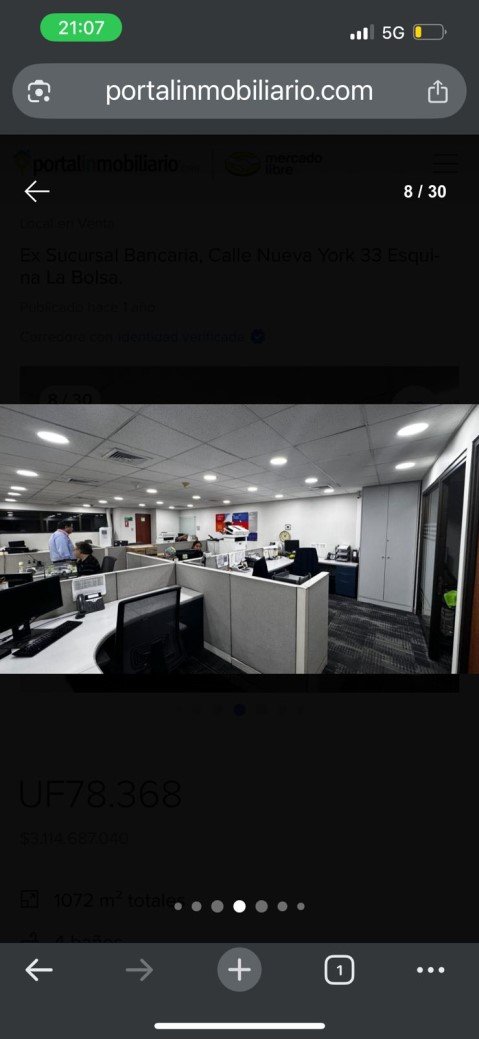 Vendemos ex sucursal bancaria de segmentos altos, emplazada en céntrico Edificio de Valores ubicado en calle Nueva York 33 esquina Calle La Bolsa en el casco histórico de la ciudad de Santiago, a pasos del metro Universidad de Chile, Clínicas, Universidades, Bancos, barrio cívico tradicionalmente asociado al edificio de la Bolsa de Comercio, Club La Unión y otros emblemáticos de Santiago Centro. La ex sucursal pertenece a reconocido banco de la plaza y se encuentra en buen estado de conservación y con terminaciones renovadas de calidad superior. Las oficinas se asocian a la planta del primer piso con acceso a calle Nueva York, subterráneo, planta baja, 2do piso, nivel de oficinas independientes, todas asociadas a un único rol y se totaliza en 1.072 m2 aproximados en sus 4 niveles, con terminaciones homologadas y habilitación flexible que permite usos alternativos, pudiendo conectarse ente sí; la ex sucursal bancaria cuenta con rampla de accesos para discapacitados, salas de reuniones, salones multiuso, privados, baños de clientes y baños de personal, bodegas, zonas de seguridad, salas blindadas para uso de tesorería con accesos controlados, puertas y bóveda de valores blindada además de cocinas y comedor de personal.