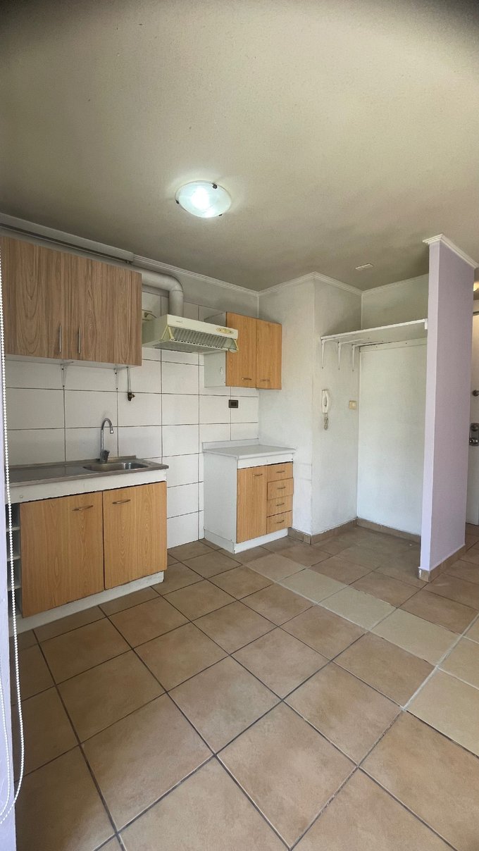 Cocina integrada/funcional, con acceso a la loggia, con piso cerámico de fácil mantención, conectada de manera práctica al resto del departamento.