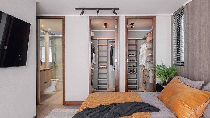 Dormitorio principal en suite con walk in closet él y ella, con salida a terraza