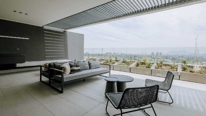 bodega de encomiendas. Gimnasio interior y exterior. Lavandería. Salón multiuso con salida a jardín. Juegos infantiles. Piscina para adultos y niños. Jardín con pérgola. Estacionamientos con factibilidad de carga eléctrica. Bicicleteros para residentes. Cerco elé