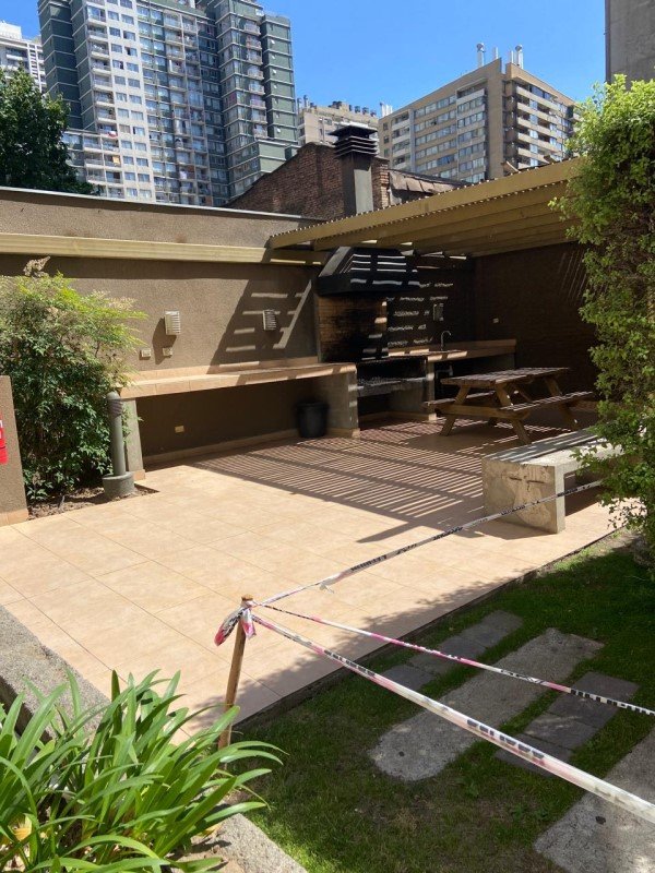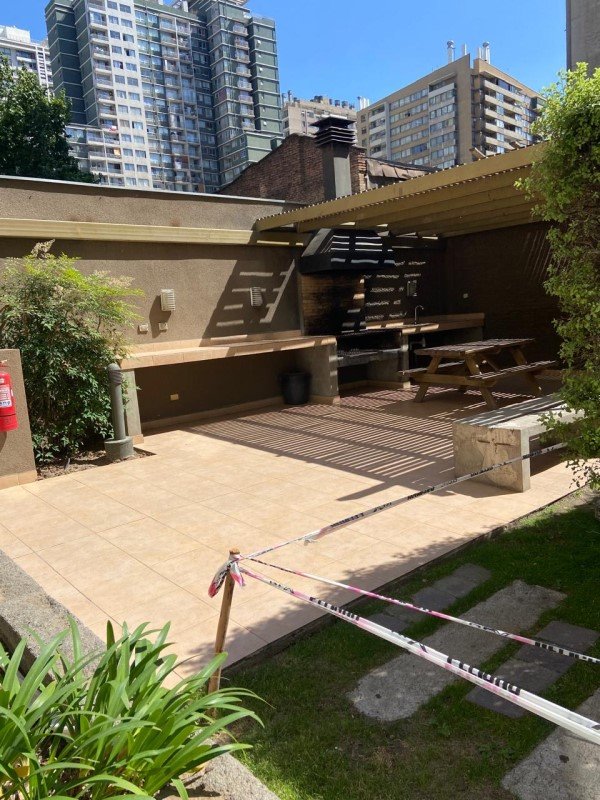 Cocina cerrada , amoblada y equipada (horno, encimera y campana) espacio para lavadora. Piso de cerámica,