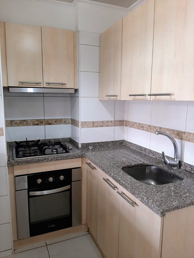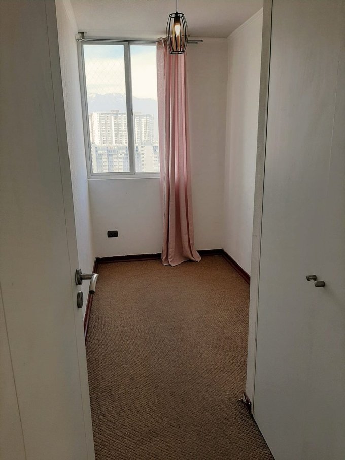 Los 2 dormitorios están alfombrados, cada uno con un closet - Baño con luz natural, tina, vanitorio, espejo a la pared, piso y muros con cerámica - Living-comedor con piso flotante - Balcón con gran vista despejada, hacia la cordillera - Todas las ventanas y el balcón tienen malla protectora - Pasillo con tres closets y uno de ellos con espacio y conexión para lavadora - El departamento tiene cocina americana con piso cerámico, con gran cantidad de muebles, con cubierta de granito - Cocina encimera a gas, de 4 platos, con horno y extractor de aire. 1 estacionamiento propio en superficie.