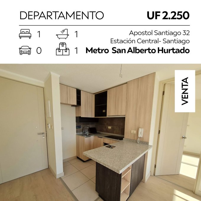 Oportunidad única de adquirir tu primer hogar en Santiago, Chile! Este encantador departamento de 1 habitación con bodega está ubicado en San Alberto Hurtado, específicamente en Apostol Santiago 32, Estación Central.