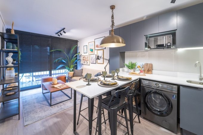 - Cocina con barra desayunadora