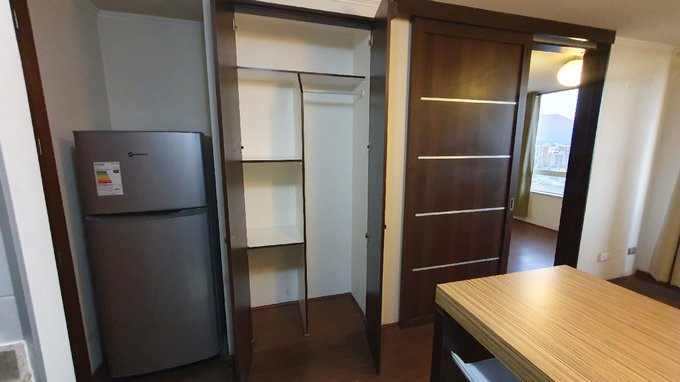 Equipamiento especial: 1.- Se entrega con barras para cortinas en estar comedor y dormitorio. 2.- Incluye refrigerador, microondas y lavadora de ropa. Listo para arrendar o habitar.