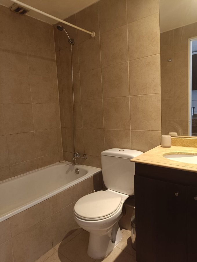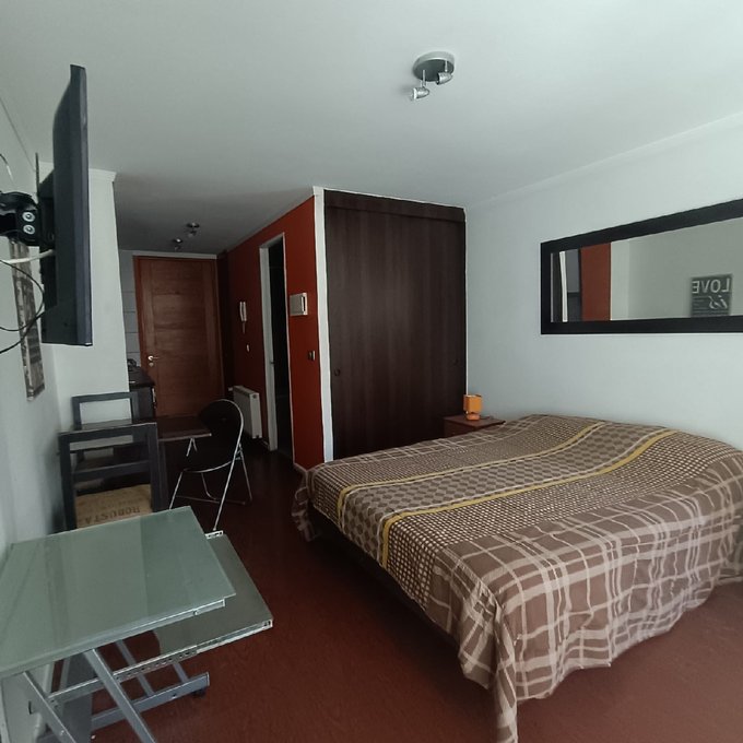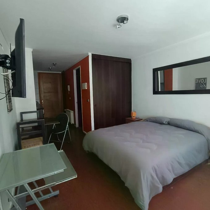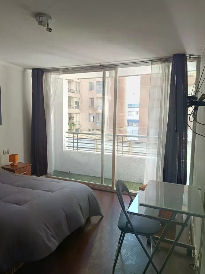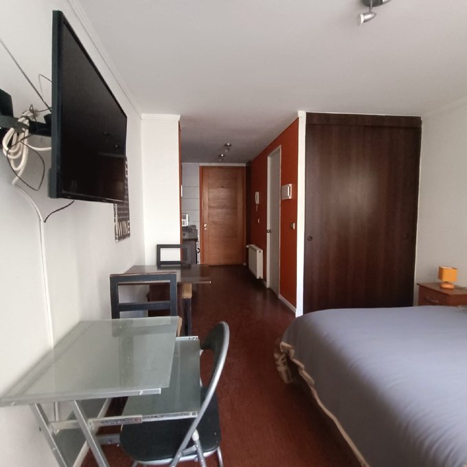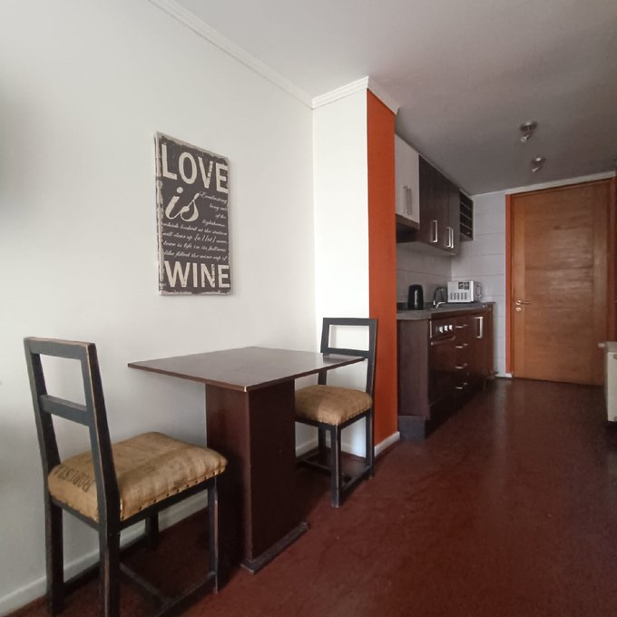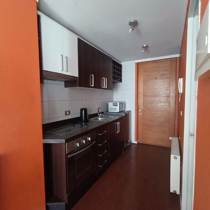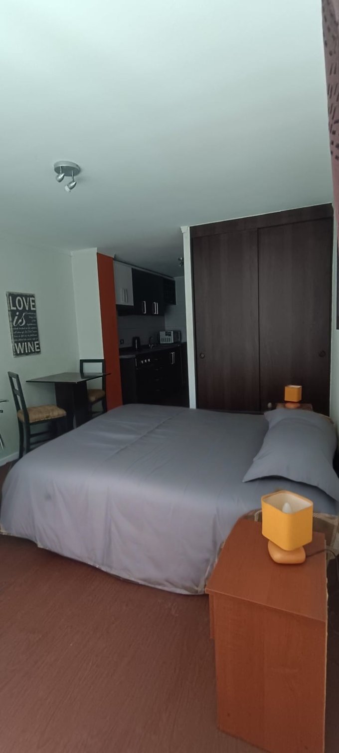 Metro Santa Lucía. Departamento estudio en a 15 minutos del metro ubicado en barrio muy tranquilo, cercano a universidades, supermercado y locales. Distribución y espacios muy cómodos para habitar, amplio espacio para acomodar su dormitorio como se muestra en las fotografías, cuenta con un baño independiente, en cocina esta la conexión a la lavadora dentro de un mueble, cocina a 2 platos eléctrica, horno empotrado, muy cómoda en espacio y funcional.