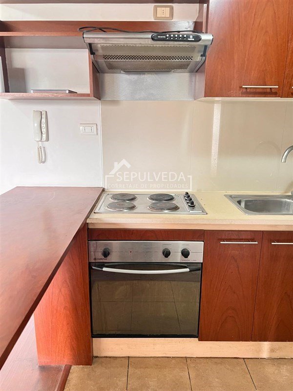 Cocina semi-amoblada de 5.7 m2, equipada con encimera eléctrica y horno empotrado.