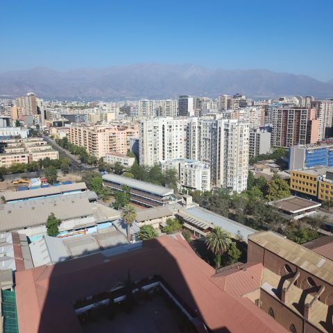 Balcón abierto con vista despejada a la Cordillera de los Andes.