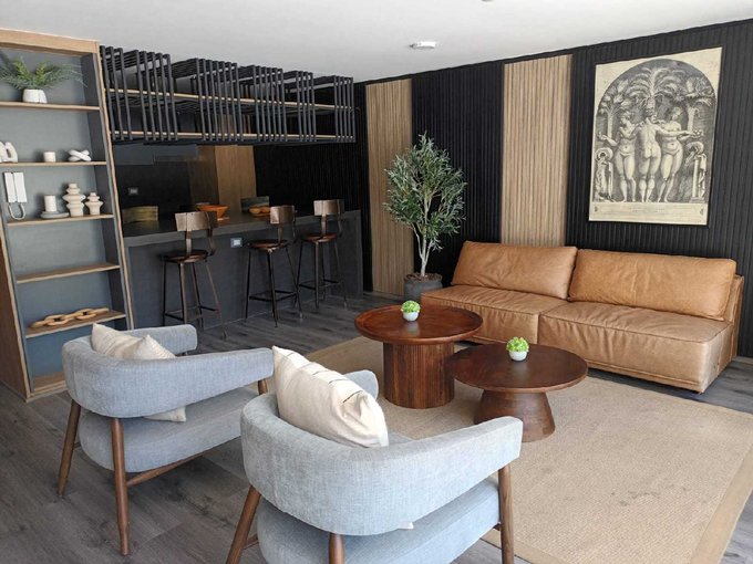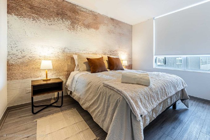 Actualmente el departamento se encuentra equipado y amoblado para funcionar con renta corta, con muebles, televisor, cama, aire acondicionado instalado, chapa electrónica, entre otros.