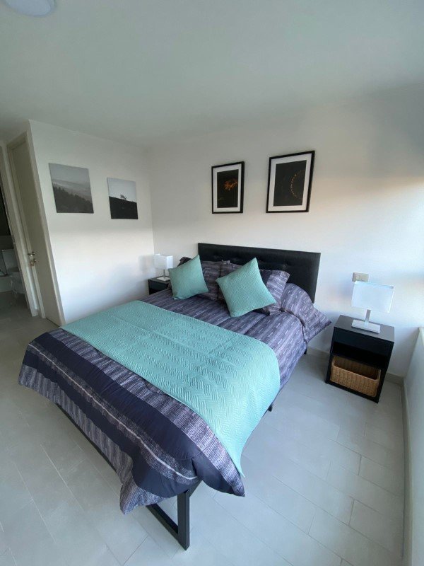 Entre sus atributos se encuentran una cocina equipada, comedor y sala de estar, ascensor, estacionamiento para visitas, gimnasio, conserjería las 24 horas, apto para mascotas, lavandería común, salón de eventos y espacios multiuso.