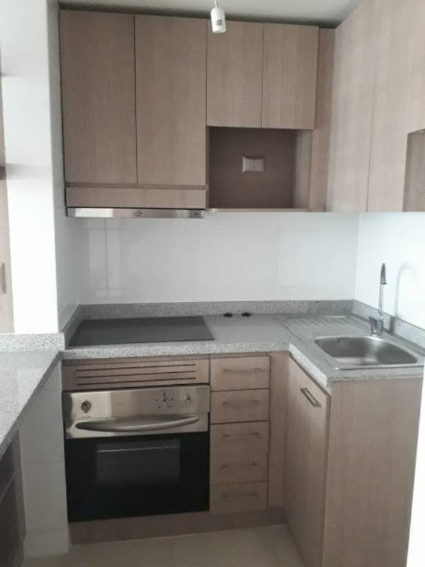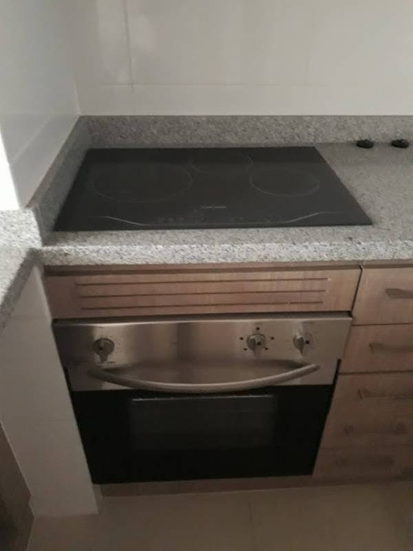 Cocina americana equipada: encimera vitrocerámica, horno y campana eléctrica