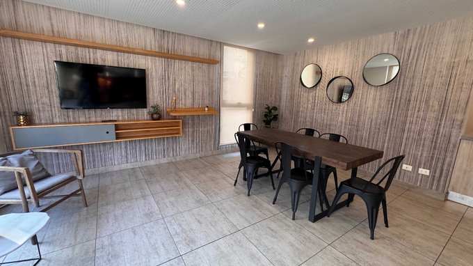 El edificio cuenta además con piscina, sala multiuso, lavandería, juegos para niños, quinchos en la azotea que ofrecen una hermosa vista, bicicleteros para los que gustan del ciclismo y que pueden aprovechar las ciclovías de la zona; gimnasio, estacionamiento para visitas y vigilancia 24/7. Además ofrece wi-fi en zonas comunes, y eficiencia energética.