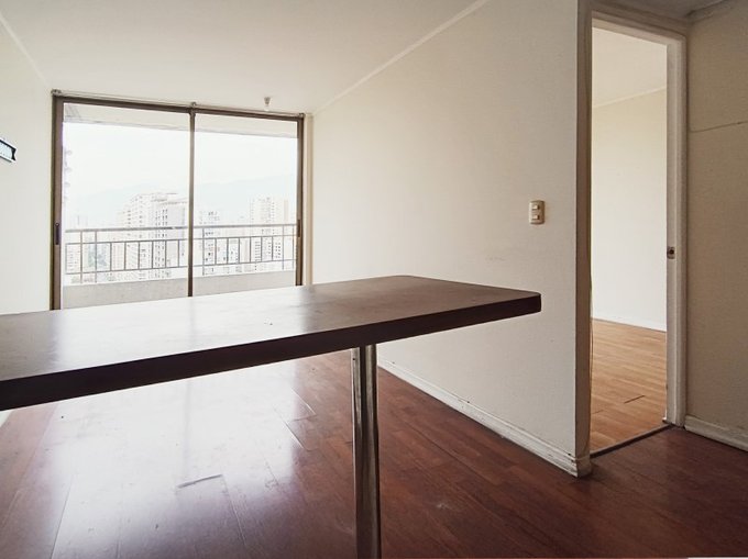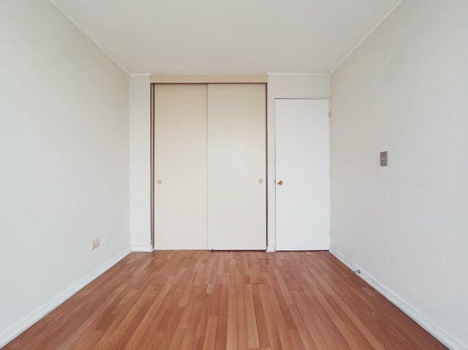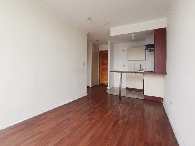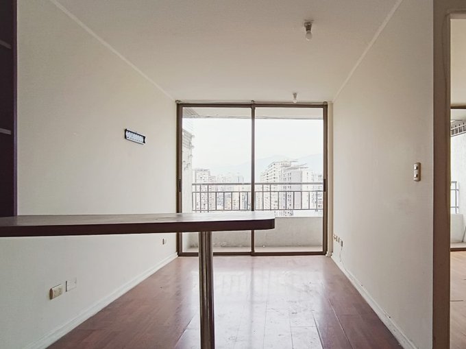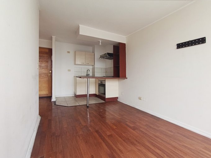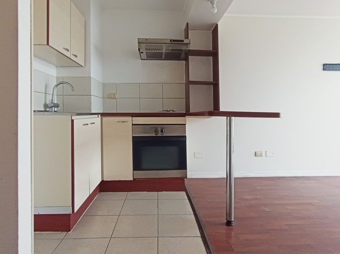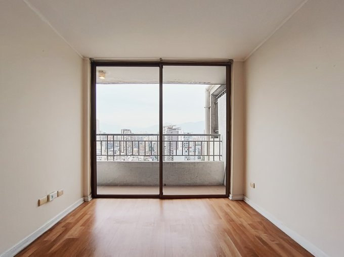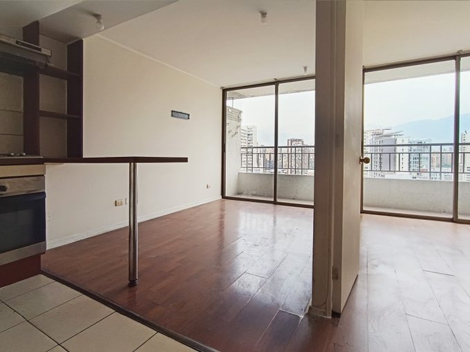 1 dormitorio, 1 baño, closet, cocina integrada con encimera, horno y campana. Piso 20, orientacion poniente, sin estacionamiento, sin bodega. Edificio moderno, en pleno corazon de santiago centro, cercano a metros moneda y parque almagro.