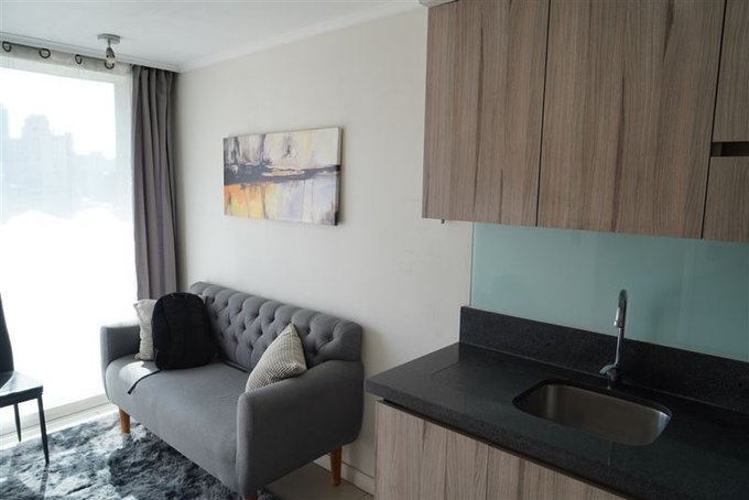 Tiene orientación oriente. Cuenta con un living comedor con cocina integrada y equipada con horno, campana y encimera vitrocerámica de 2 platos, espacio para microondas. Tiene un dormitorio en suite con closet. La terraza está conectada al dormitorio y al living.