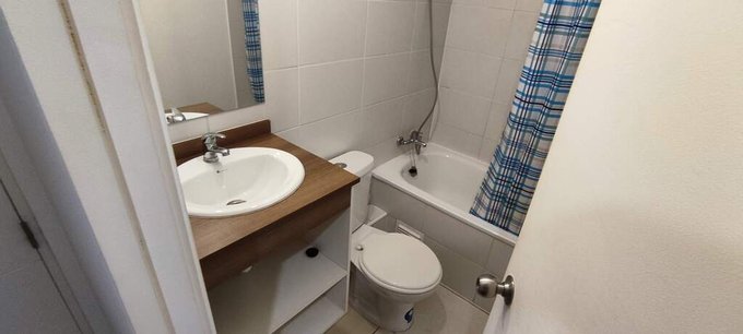 *Baño con mueble vanitorio, wc, tina, piso cerámica.