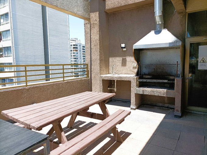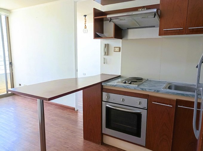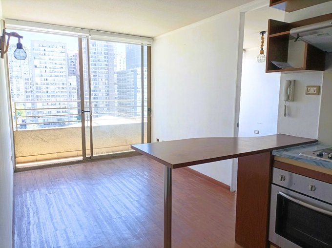 Luminoso y acogedor departamento de 1 dormitorio, 1 baño, con vista despejada al norte, ubicado en calle Mario Kreutzberger (calle Rosas con San Martín), frente al Teatro Teletón.