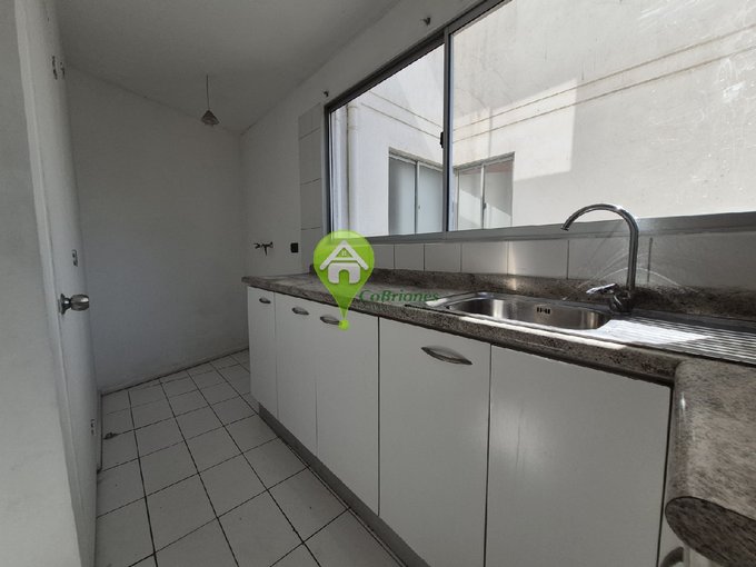 Cocina amoblada, equipada con campana y calefón