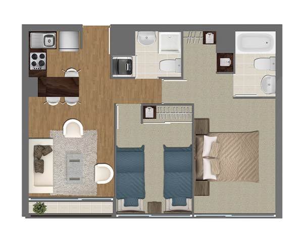 Ubicado en piso alto, este departamento destaca por su luminosidad, funcionalidad y un agradable balcón que aporta amplitud a los espacios.