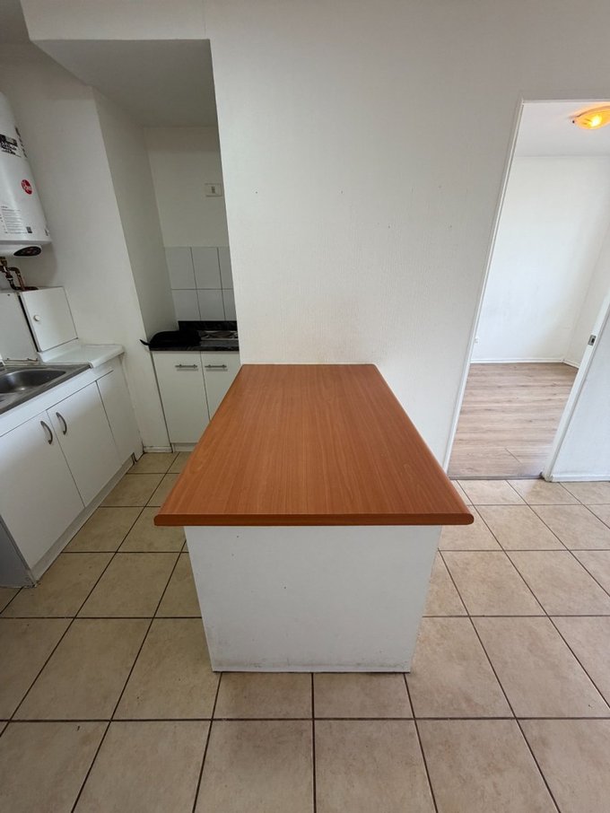 Se arrienda departamento ubicado en piso 3, con 1 dormitorio y baño en suite. La cocina, equipada, está integrada al living con salida al balcón. Tiene termo de agua caliente, y conexión para lavadora.