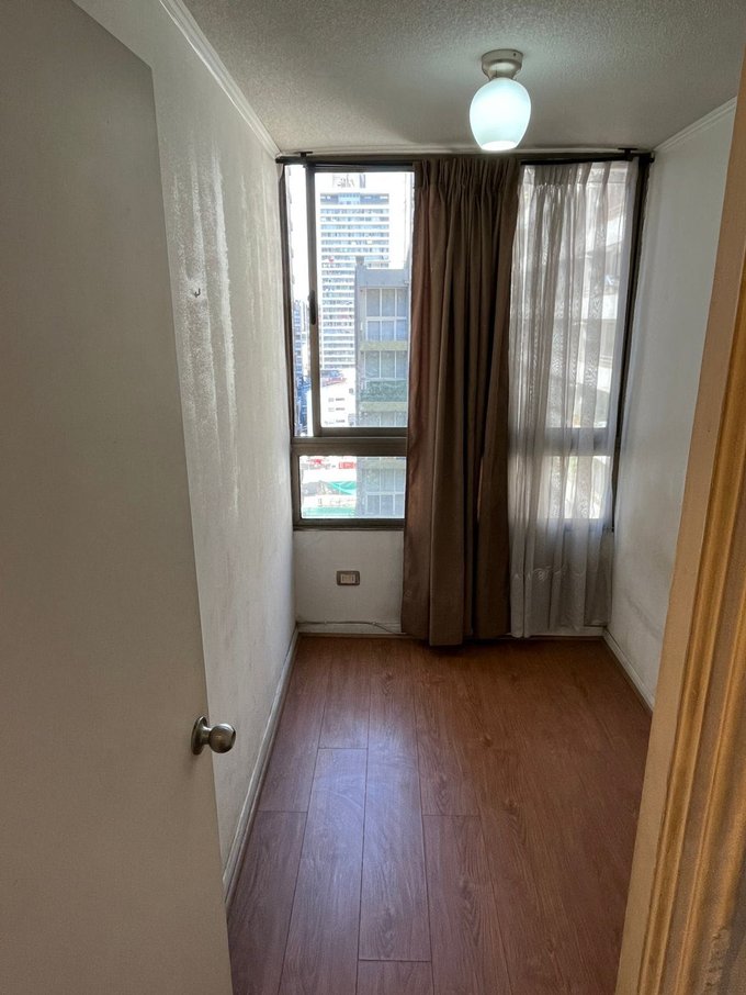 Ubicado en piso 12, con conserjería 24/7. Tiene 2 dormitorios, 1 baño, living-comedor y cocina americana. No tiene balcón ni estacionamiento, bajos gastos comunes.
