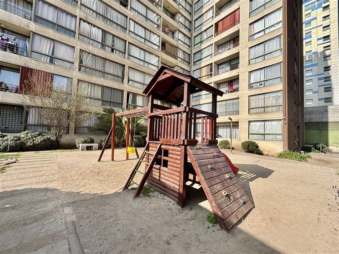 Condominio tiene áreas verdes, juego de niños, conserjería, bicicletero, estac de visitas y salón para reuniones.