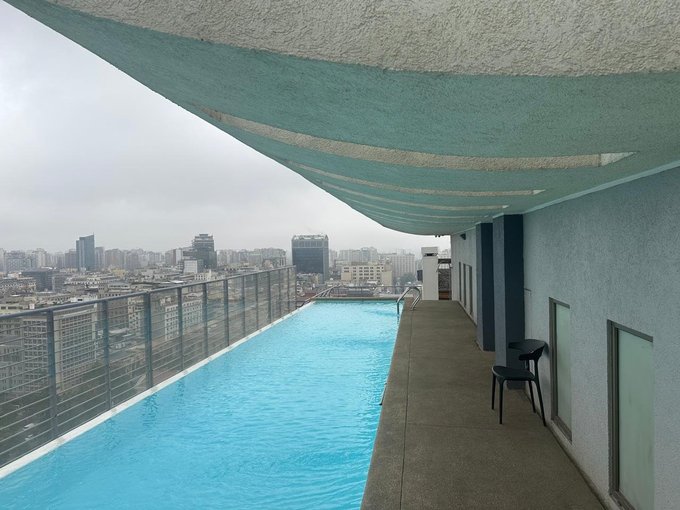 -Piscina ubicada en la terraza, con vistas despejadas de la ciudad.