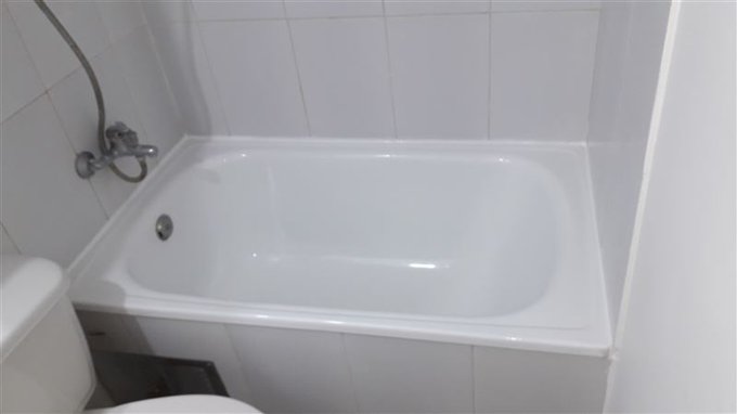 Piso del baño de cerámica y paredes con azulejos todo lavable.