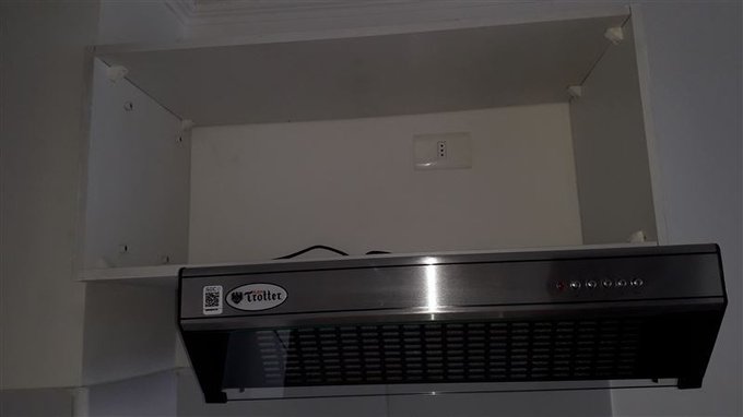 Cocina; ventilación con campana con muebles empotrados, piso cerámica