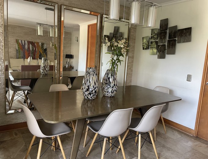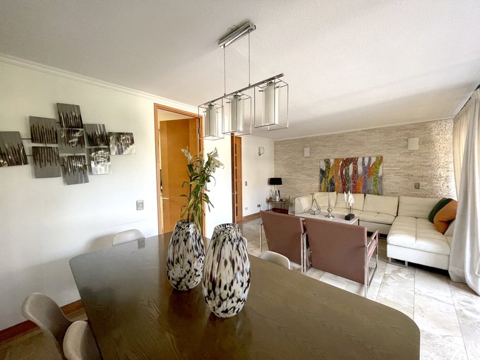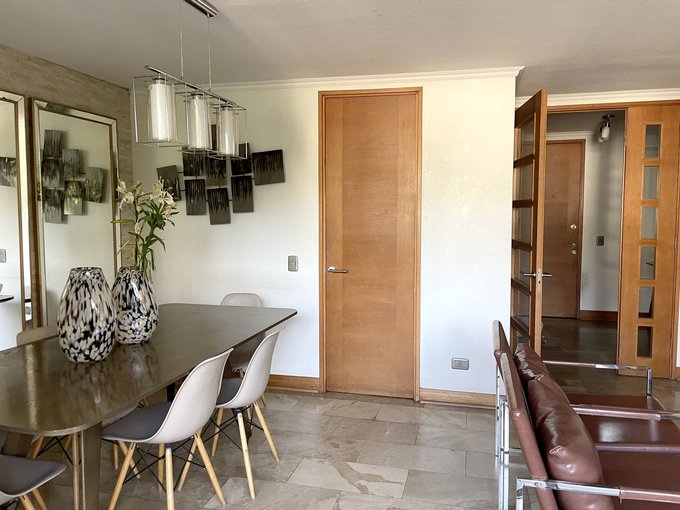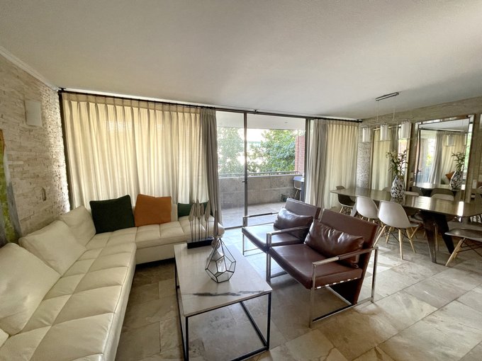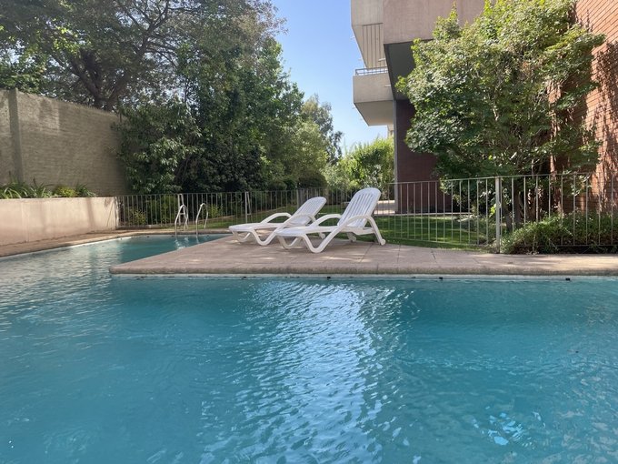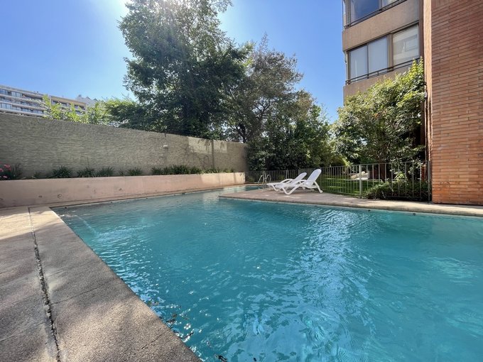 Departamento en excelente ubicación, a pasos de La Dehesa y de Avenida Las Condes, gran conectividad a autopistas, barrio residencial y edificio muy agradable con acceso controlado, cámaras y sector de estacionamientos para visitas, piscina, jardines, juegos para niños, quincho en primer piso, sala de eventos.