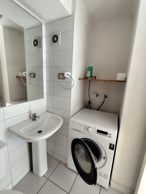 1 dormitorio, 1 baño, cocina tipo americana, conexión a lavadora y lo mejor... es que viene con lavadora y secadora incluida.
