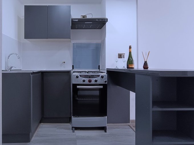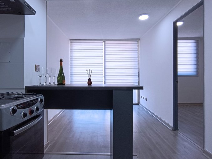 1 dormitorio, 1 baño, closet, living y comedor, cocina americana, balcón, piso flotante, vista oriente, sin estacionamiento, sin bodega