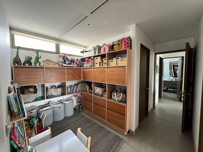 En el área de los dormitorios destaca por una sala de estar y dos dormitorios secundarios amplios, ambos con closets murales, que comparten un baño completo con ventana . El dormitorio principal con baño en suite, walking closet y abundante luz natural.