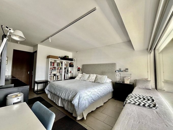 Al ingresar, te recibe un hall con baño de visitas que da paso a un amplio living-comedor, iluminado por grandes ventanales con salida a una terraza rectangular con hermosa vista hacia el oriente. La cocina americana, funcional y totalmente equipada, incluye un comedor de diario. En esta área también se encuentra separada de este ambiente una logia ventilada. El departamento también ofrece un dormitorio y baño de servicio, que puede servir como home office.
